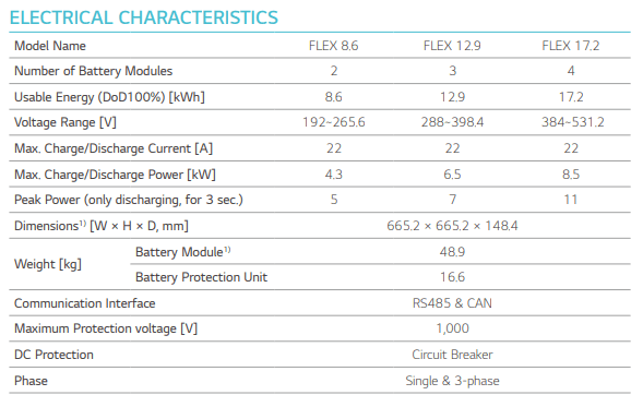 - Available in storage capacities of 8.6 kWh, 12.9 kWh, 17.2 kWh